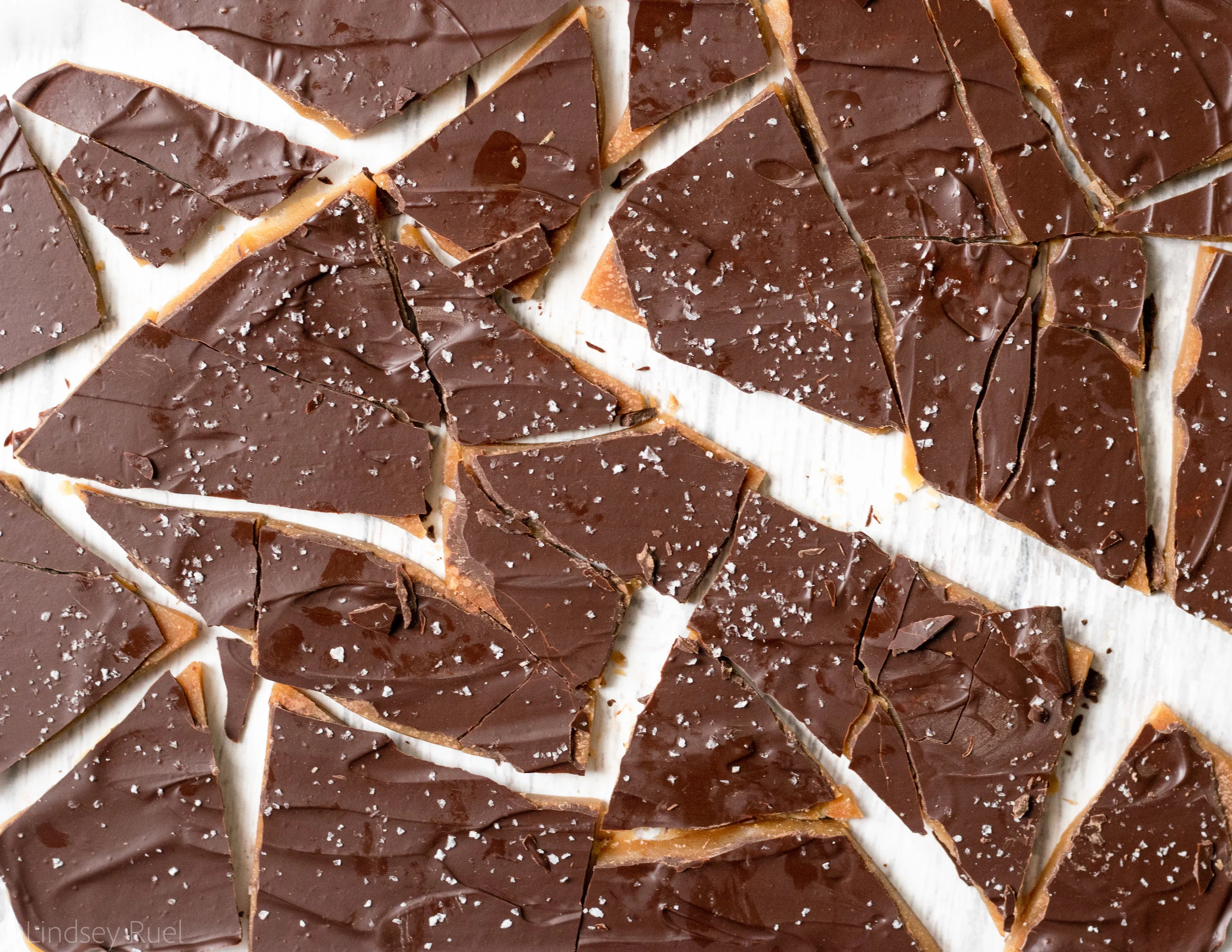 Toffee is one of my favorite treats to make during the holidays because it is so darn easy! It’s the perfect thing to make if you are short on time and need a sweet treat for a party or to give out as a gift.